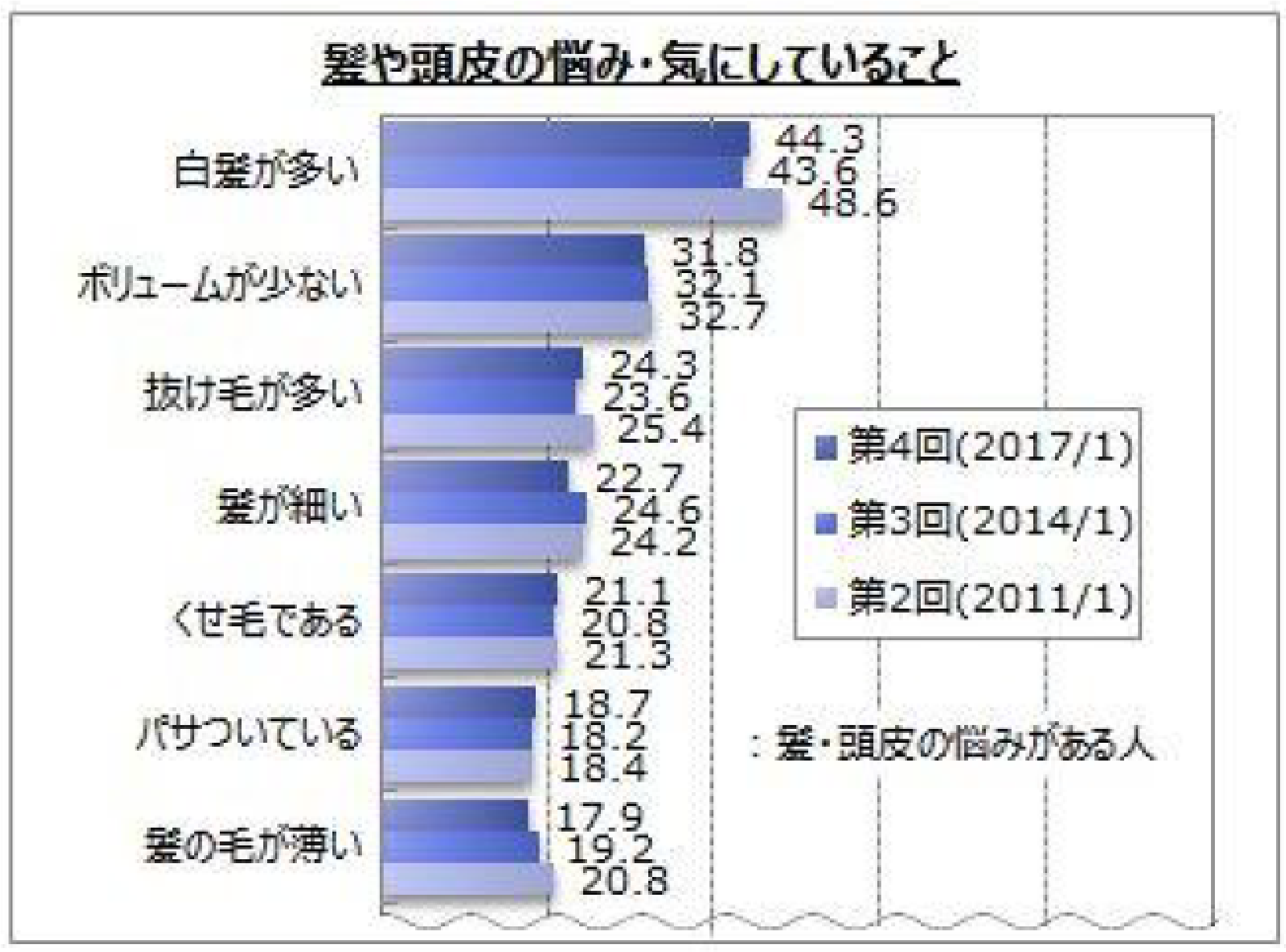 気になることは、白髪が多い、ボリュームが少ない、抜け毛が多いとなっている。