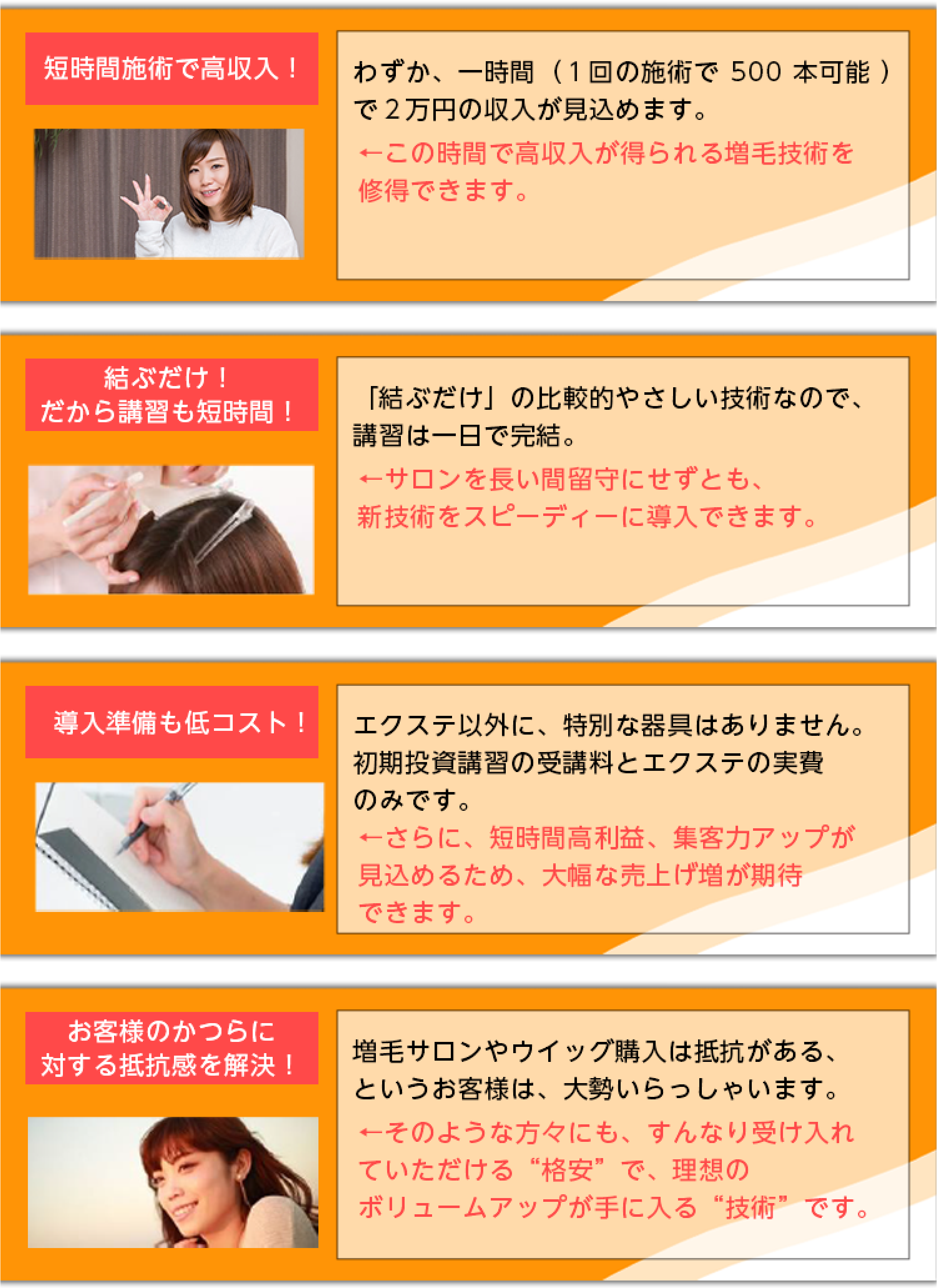 「顧客集客」+「顧客単価アップ」=「日本増毛スクール」の増毛技術導入で実現!